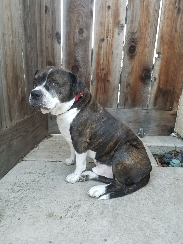 This sweet american bulldog pitbull mix dog has a very loving personality and is good with children and dogs.